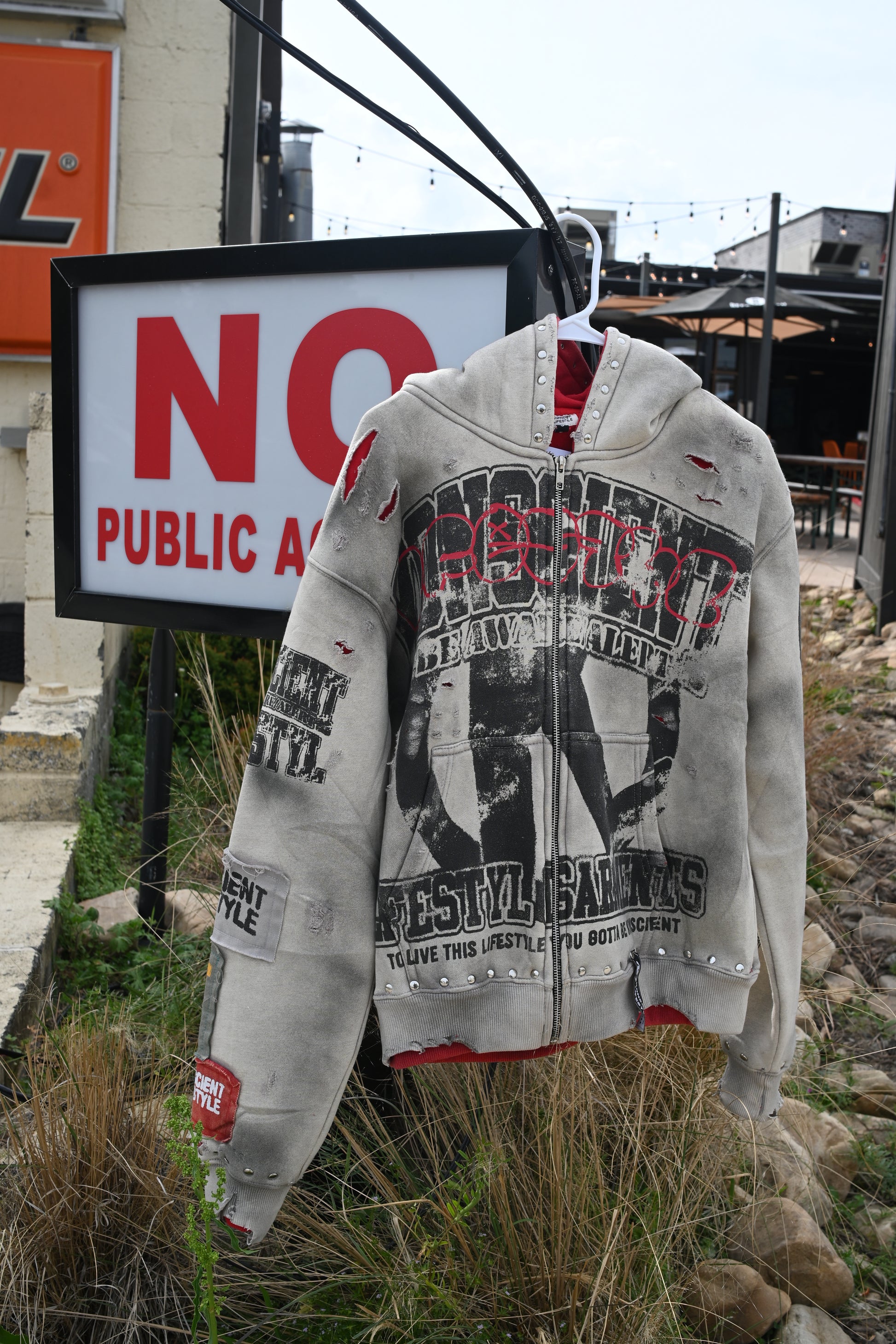“AGED DISTRESSED” ZIP-UP HOODIE